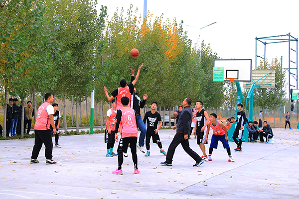 开赛式上,团委学生工作处负责同志致开幕词,随后裁判员代表、运动员代表分别进行宣誓。随着一声哨响,篮球赛正式开赛。本次篮球赛采取小组循环赛制进行。比赛中,队员们娴熟的运球、漂亮的抢断、精彩的投篮动作博得在场师生阵阵掌声。赛场上欢呼声、呐喊声此起彼伏,来自师范/文化创意学院的同学们精彩的啦啦操表演为篮球赛活跃了气氛。