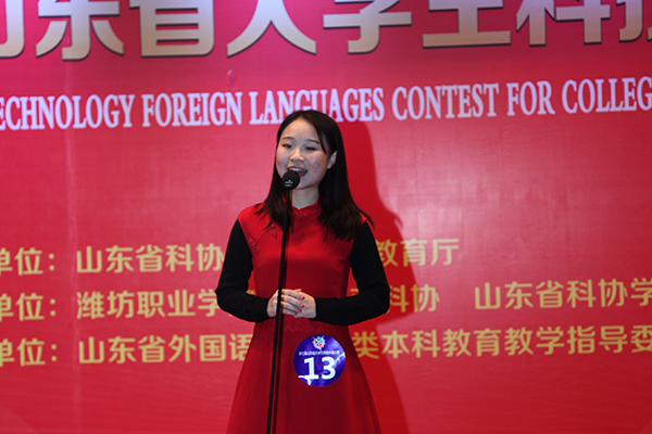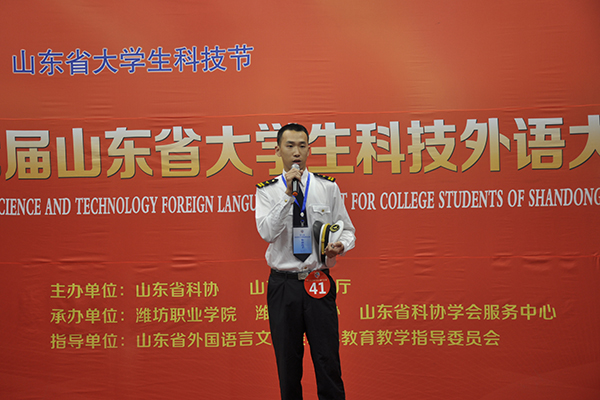 据悉,山东省大学生科技外语大赛是由山东省科协和山东省教育厅共同主办的一项参赛选手水平高、参赛面广、认可度高的外语赛事,也是山东省大学生科技节的重要组成部分。大赛举办七年来,通过主承办单位的共同努力,程序逐步完善,竞技水平越来越高,影响越来越大,深受全省高校师生和用人单位广泛关注和高度重视,已成为高校科技外语教学成果展示和大学生成才就业创业的重要平台,也成为省科协和省教育厅为培养未来高素质科技外语人才着力打造的重要品牌。(葛树强供稿)