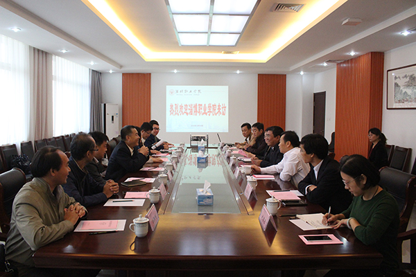 10月15日,淄博职业学院党委副书记、副院长姜义林带领考察团一行8人来必赢考察交流。院长王家爱、副院长贺志强在滨海校区会见客人。相关部门负责同志参加活动。