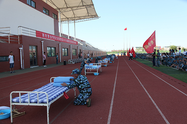 9月15日下午,学院滨海校区2015级新生军训内务比赛在体育场举行。团委学生工作处负责同志,各二级学院党支部书记、分管学生负责人、新生辅导员(班主任)以及滨海校区2015级全体新生观看了比赛。军训团领导担任比赛评委。