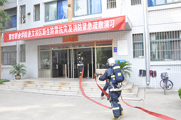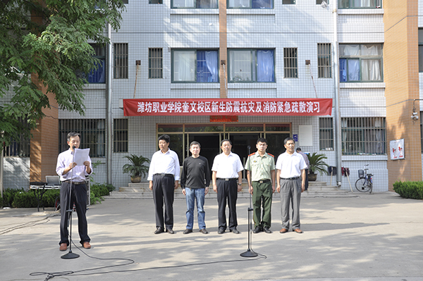 奎文校区举行2015级新生防震抗灾及消防紧急疏散演习