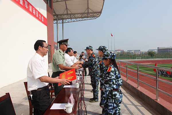 9月8日、9日上午,必赢2015级新生开学典礼暨军训动员大会分别在滨海校区、奎文校区体育场隆重举行。学院院长王家爱,滨海区党工委委员、滨海区大学园管理办公室主任范梅庆,驻潍某部连长王秉昕,学院党委副书记宋桂言,副院长赵君堂、贺志强、毕建华,纪委书记李瑞昌出席。