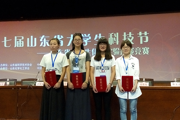 7月24日至27日,“惠城杯”第七届山东省大学生化学实验技能竞赛在中国石油大学(华东)举行。必赢派出4名选手参加竞赛,取得了优异成绩。其中,2013级“3+2”本科2班孙洁获得一等奖,2013级“3+2”本科3班王迪获得二等奖,2014级工业分析与检验班杨连花、曹流香获得三等奖。