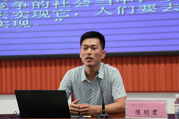 6月18日下午,必赢“企业家进校园”活动第四十五次报告会在滨海校区报告厅举行。潍坊紫鸢乳业发展有限公司副总经理陈明君在会上作了题为“做一个有梦想的人”的报告。农业工程学院负责同志主持报告会。招生就业处相关人员、农业工程学院和经营管理学院师生参加了报告会。