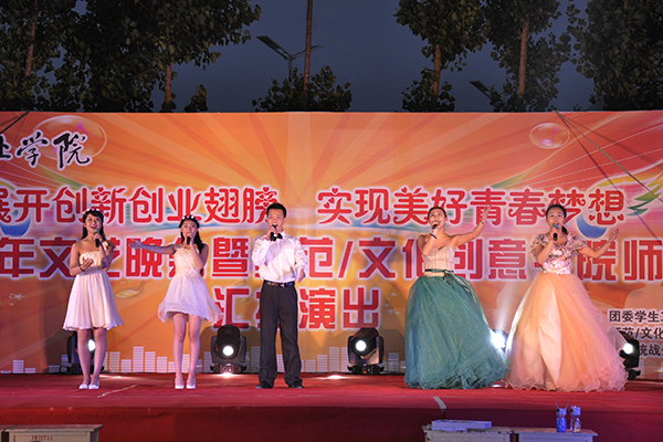 6月2日晚,由学院团委学生工作处主办,师范/文化创意学院承办的“展开创新创业翅膀,实现美好青春梦想”2015年文艺晚会暨师范/文化创意学院师生汇报演出在滨海校区篮球场举行。学院党委副书记宋桂言,副院长赵君堂、毕建华出席。团委学生工作处负责同志,各二级学院院长、党支部书记、分管学生工作负责人、团总支负责同志及滨海校区全体师生观看了演出。