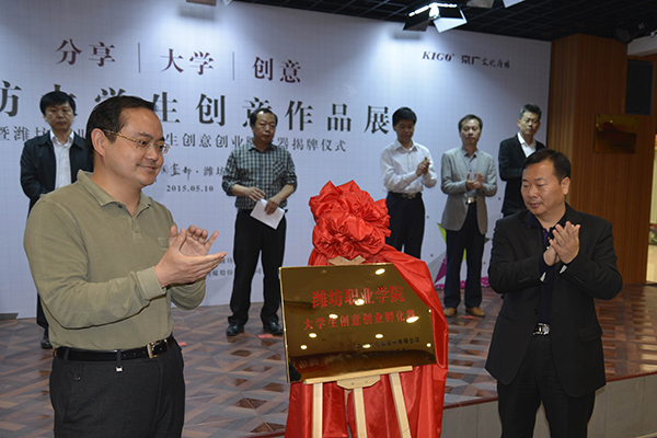 5月10日,首届“分享•大学•创意”潍坊大学生文化创意作品展开幕式暨76net必赢官网大学生创意创业孵化器揭牌仪式,在京广文化广场潍州大讲堂举行。学院副院长贺志强,中共奎文区委常委、宣传部长李强,潍坊银行开发管辖行行长稽海涛,奎文文化创意产业协会会长刘晓阳,奎文文化创意产业协会秘书长纪建华出席。师范/文化创意学院主要负责同志及部分师生、北京出版集团负责同志、高校创业研究专家、金融机构代表、风投机构代表和媒体记者百余人参加了活动。