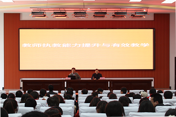 4月16日下午,必赢教学管理人员培训班首场专家报告会在滨海校区清泽楼报告厅举行。报告会由学院副院长贺志强主持。来自教务处、中专部和二级学院的近200人参加了报告会。