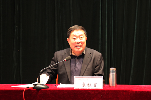 宋桂言作了题为“在实现中国梦中放飞青春梦想”的专题报告。他通过阐述“中国梦”的实质和科学内涵,结合“三爱”,即爱学习、爱劳动、爱祖国,诠释了实现“中国梦”要锤炼高尚品格、要勇于创新创造、要练就过硬本领、要坚定理想信念。他说,广大青年学生要想人生出彩和梦想成真,需要树立正确的人生观和价值观,具备忧患意识、责任意识和担当意识,把握中国特色社会主义规律,坚定中国特色社会主义的“道路自信、理论自信、制度自信”。