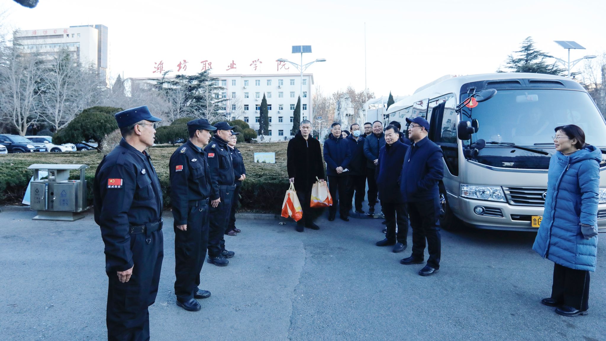 学院领导先后来到奎文校区和滨海校区,与值班人员进行座谈交流,向他们致以节日的祝福和诚挚的问候。韩瑞东表示,过去的一年,学院各方面发展取得了可喜成绩,得益于全体师生员工的努力拼搏和辛勤付出。在新的一年里,希望大家继续凝心聚力,全力以赴,奋力开创学院高质量发展新局面,为申报“新双高”和争办职教本科院校打下坚实基础。韩瑞东指出,春节是中华民族的传统节日,大家舍小家顾大家,站岗值班,恪尽职守,体现了爱岗敬业的奉献精神,希望全体值班人员认真履行职责,加强校园安全巡逻,注意设备运行监管,确保春节期间各项工作正常运转,校园平安稳定,并对大家的辛勤付出表示衷心感谢。