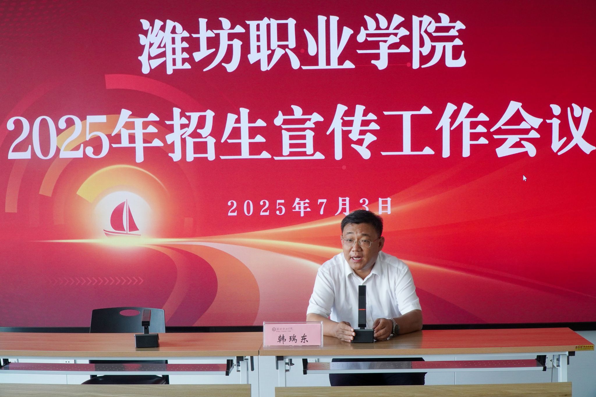 7月3日下午,学院组织召开2025年招生宣传工作会议。学院院长韩瑞东、副院长陈美霞出席会议并讲话,宣传部、纪检监察办公室、团委学生工作处等相关职能部门负责同志,各二级学院院长、招生宣传骨干教师参加会议。
