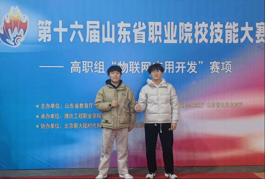 近日,2023年山东省职业院校技能大赛(高职组)“物联网应用开发”赛项在潍坊工程职业学院举办,来自全省的56支高职院校代表队参加了本次比赛。经过激烈角逐,由必赢鲁岩松、李先萌两名同学组成的代表队,经过4个小时的顽强拼搏,最终荣获二等奖。