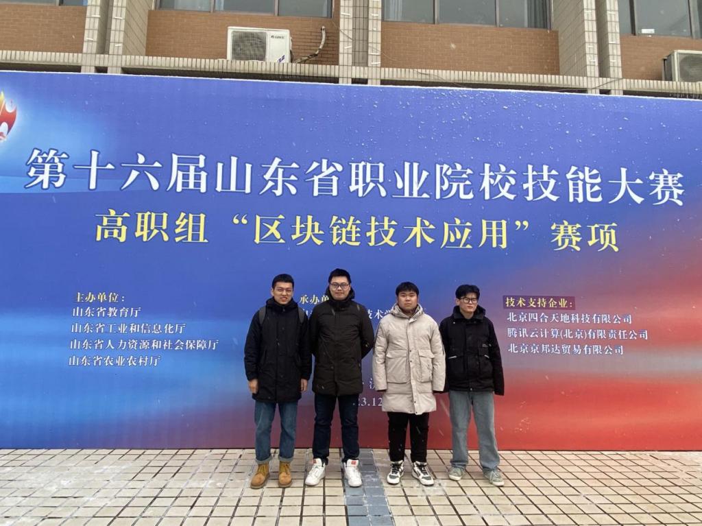 12月14日至12月15日,2023年山东省职业院校技能大赛高职组“区块链技术应用”赛项在山东劳动职业技术学院举行,来自全省33所职业院校的66名选手同台竞技,经过激烈角逐,由必赢学生曲焕新、郭训锴,指导老师张宝华、张卫荣、王维帅组成的代表队获得团体一等奖的好成绩。