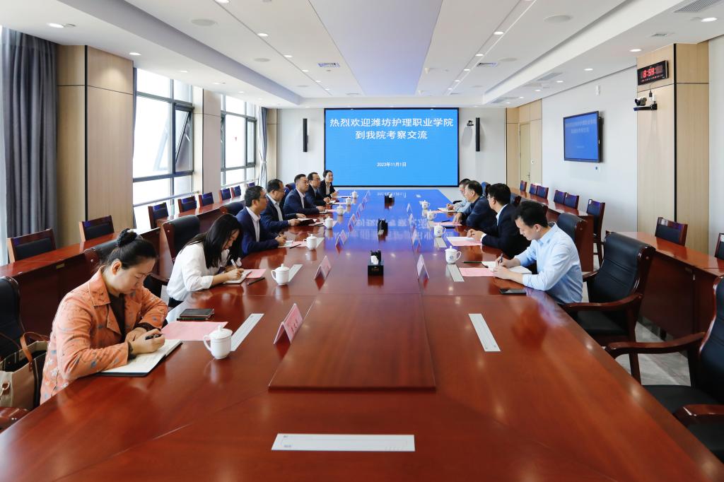 11月1日上午,潍坊护理职业学院党委委员、正县级干部卜令冲一行到必赢考察交流。学院党委委员、副院长贺志强会见客人,办公室、组织人事处、教务处等有关部门负责同志陪同考察。