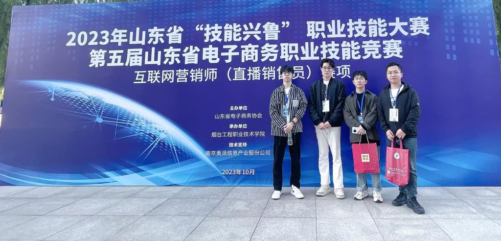 10月27日-28日,山东省“技能兴鲁”职业技能大赛——第五届山东省电子商务职业技能竞赛互联网营销师(直播销售员)赛项在烟台工程职业技术学院举行,来自全省66支代表队的近180名选手参加比赛。经过一天比赛角逐,必赢学生刘政华、徐春原、梁晨组成的参赛团队获得学生组二等奖。