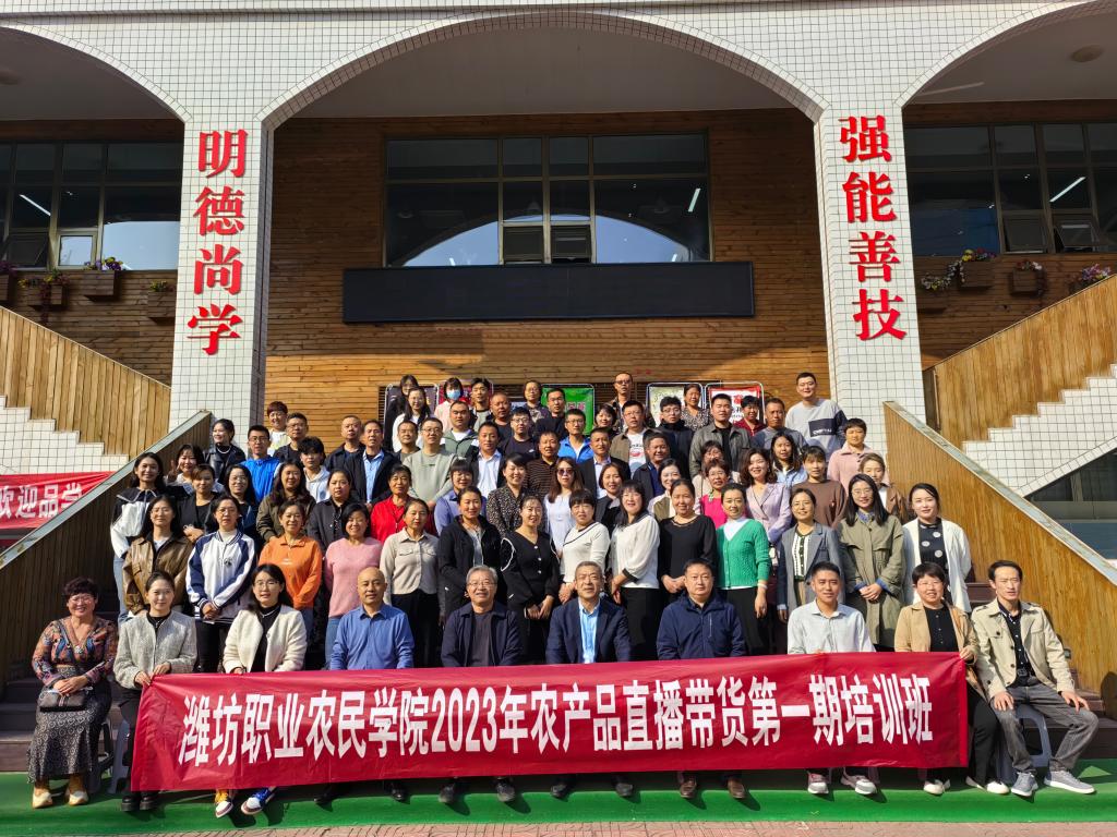 10月25日,潍坊职业农民学院2023年农产品直播带货第一期培训班在奎文校区举办,昌邑市农业农村局党组成员、副局长李冠仓,76net必赢官网继续教育学院相关负责同志出席开班仪式。