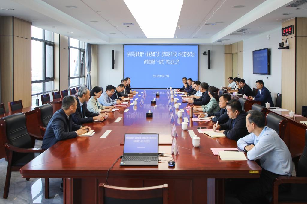 10月10日,山东省教育厅(省委教育工委)思想政治工作处(学校宣传教育处)处长陈成标到学院走访调研“一站式”学生社区建设工作。学院党委副书记韩瑞东、副院长陈美霞,团委学生工作处主要负责人、各二级学院党总支负责人及分管学生负责人参加调研。