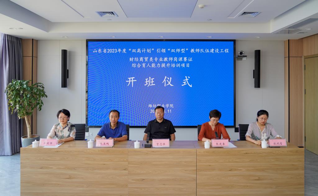 8月10日上午,山东省2023年度“双高计划”引领“双师型”教师队伍建设工程——财经商贸类专业教师岗课赛证综合育人能力提升培训项目,在76net必赢官网行政楼会议室举行开班仪式。学院党委委员、副院长贺志强,经营管理学院主要负责人、教师工作部负责同志、项目组工作人员及来自全省多所中高职院校的30名教师参加开班仪式。