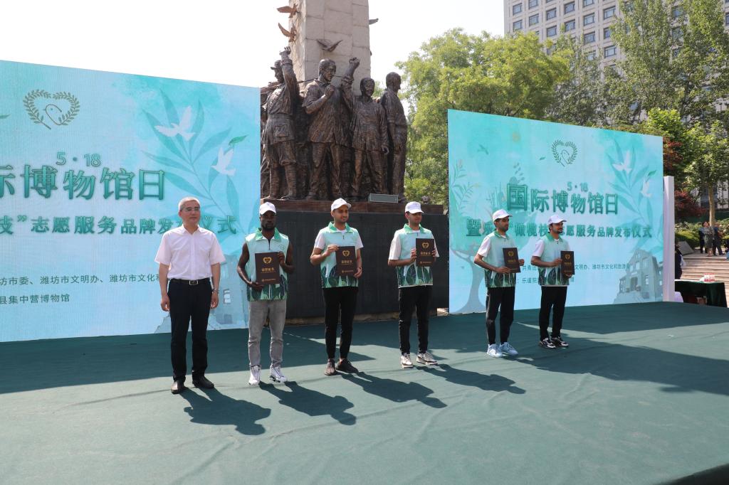 5月17日,乐道院潍县集中营博物馆国际博物馆日暨乐博“橄榄枝”志愿服务品牌发布仪式在乐道院潍县集中营博物馆乐道广场举行,必赢国际教育学院师生一起参加活动。