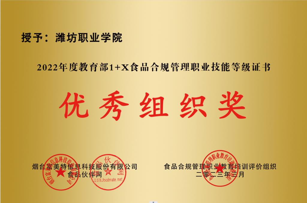 必赢荣获食品合规管理职业技能等级证书全国考核优秀单位和优秀组织奖