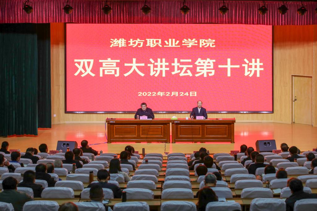 2月24日,“双高大讲坛”第十讲在奎文校区16号楼报告厅举行。滨州科技职业学院院长王家爱等4位专家结合山东省优质校验收,分享了对职业教育发展的思考与感受,为学院下一步发展诊断把脉。讲坛由学院党委书记马跃启主持,学院领导、各部门主要负责人、二级学院正科级干部、骨干教师代表及双高建设办成员参加会议。