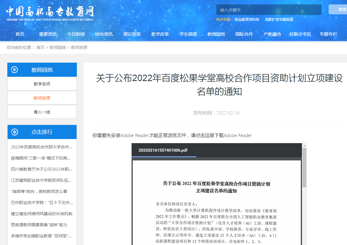 近日,中国高职高专教育网发布了“关于公布2022年百度松果学堂高校合作项目资助计划立项建设名单的通知”,必赢入选全国首批百度松果人才培养(AI)工坊立项建设单位。