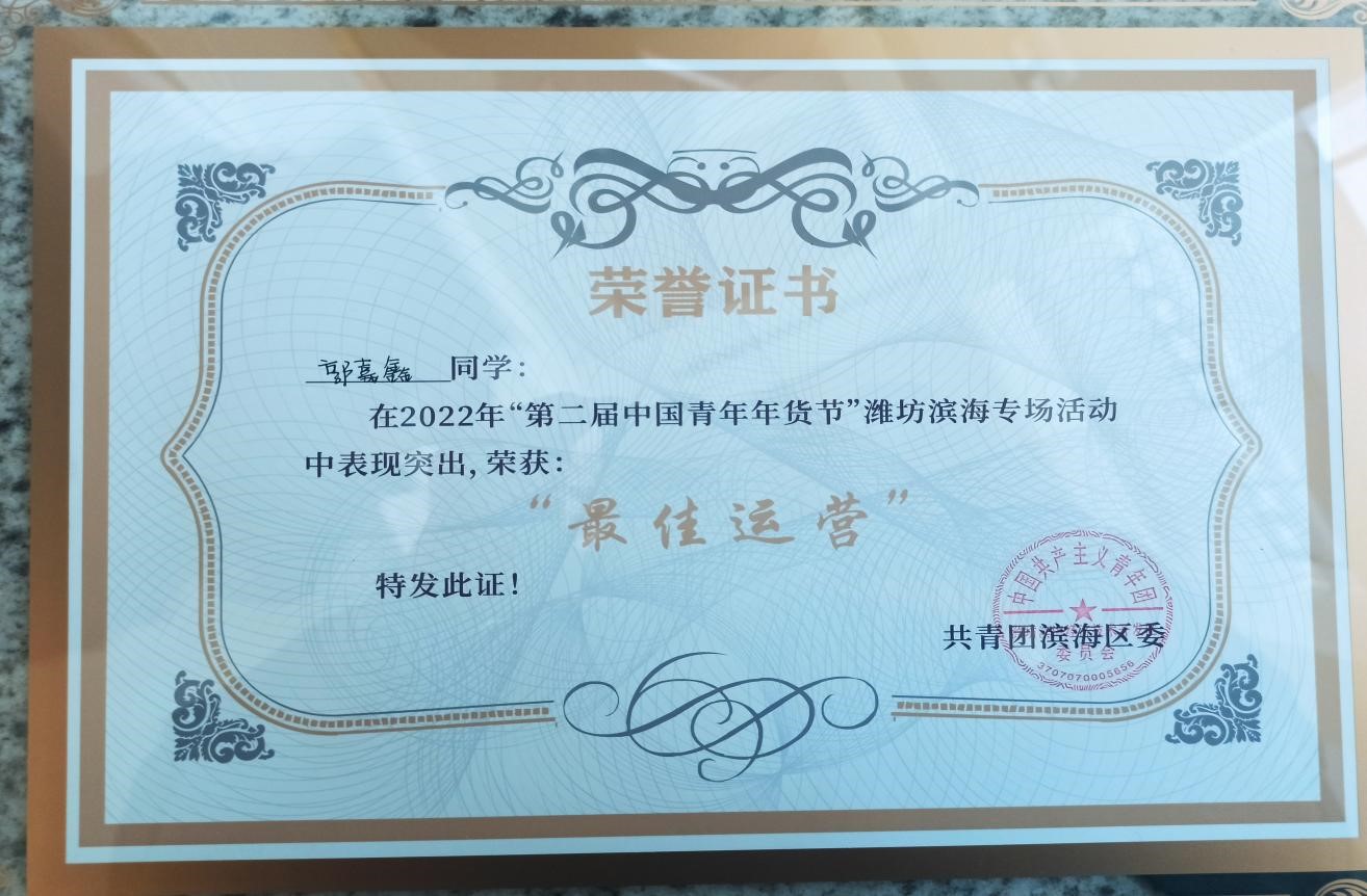 必赢学生在第二届“中国青年年货节”潍坊滨海专场活动斩获佳绩