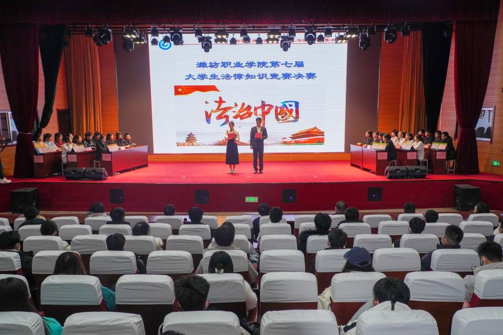 12月16日下午,学院第七届大学生法律知识竞赛决赛在滨海校区图书馆报告厅举行。团委学生工作处、思政部负责同志,思政部教师、各二级学院师生及青年法学社同学代表200余人观看了竞赛。