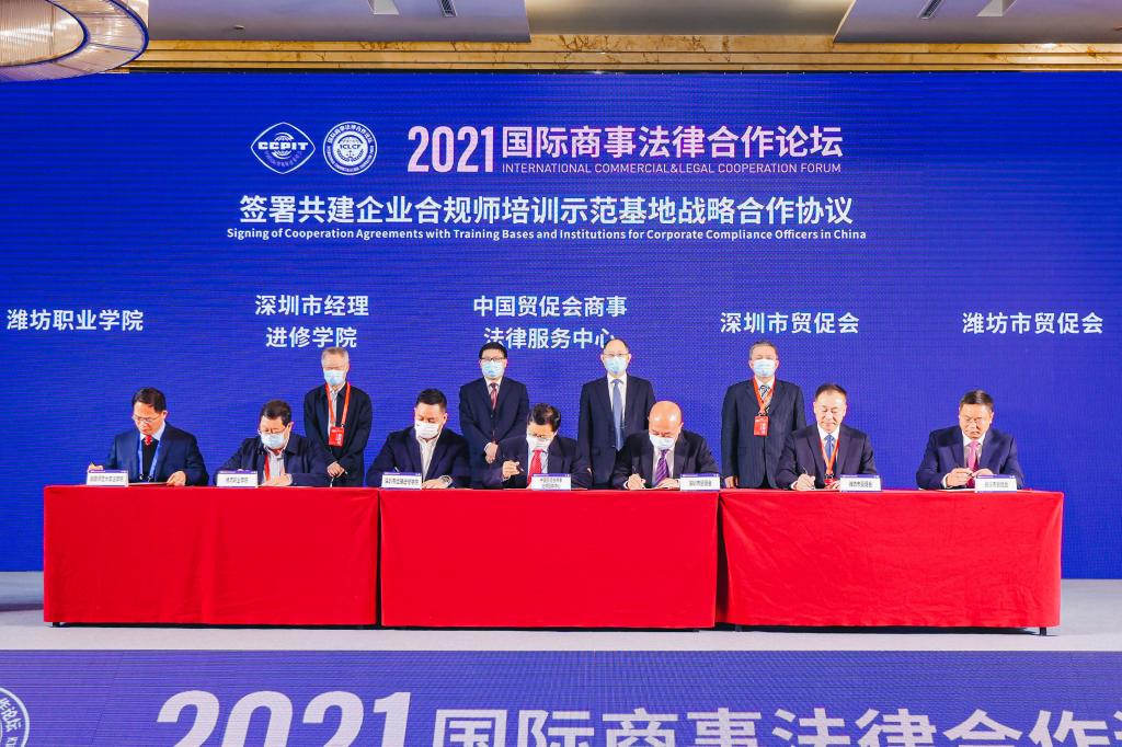 12月15日,由中国国际贸易促进委员会主办,中国国际贸易促进委员会法律事务部和商事法律服务中心、长沙市人民政府承办的“2021国际商事法律合作论坛”在长沙开幕。学院党委副书记、副院长桑福岭应邀参加“企业合规管理与合规专业人才培养”圆桌会议论坛并发表演讲,必赢与中国贸促会商事法律中心、潍坊市贸促会共同签署了共建企业合规师产业学院和企业合规师示范培训基地战略协议,全国第一家企业合规师产业学院、第一批合规师示范培训基地落地必赢。