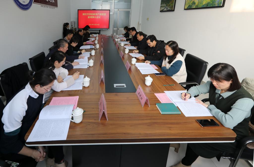 12月14日,2021年潍坊市学前教育产教联盟副理事长会议在奎文校区举行。潍坊市学前教育产教联盟副理事单位代表以及教育机构、幼儿园单位代表,学院副院长、联盟秘书长贺志强,学院科技处、文化创意学院负责同志参加会议。