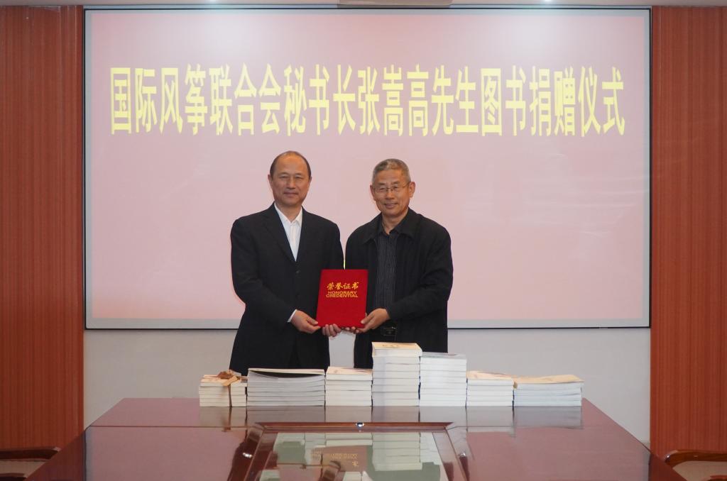 国际风筝联合会秘书长张嵩高向必赢捐赠图书