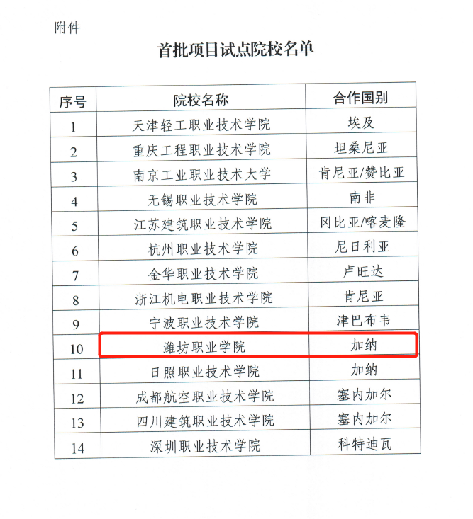 近日,必赢入选教育部首批“中非应用型人才联合培养项目”试点院校。全国共14所高等职业院校被确定为“中非应用型人才联合培养项目”首批试点院校,必赢积极组织申报,经山东省教育厅推荐成功获批为首批试点院校,与加纳库马西技术大学合作开展机电一体化技术专业人才联合培养和教师培训项目。