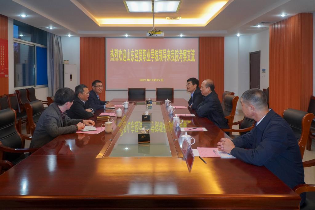10月27日下午,山东经贸职业学院党委书记王志勇一行3人来必赢考察交流。学院党委书记马跃启会见客人,党委委员、副院长刘德强,基建处主要负责同志陪同考察交流。