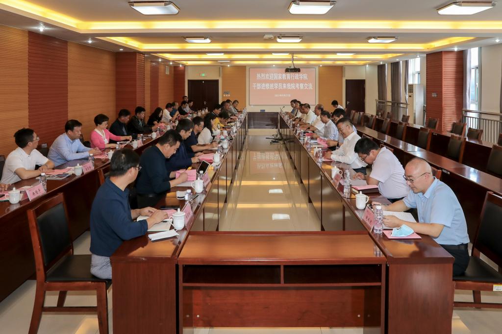 9月27日下午,国家教育行政学院副调研员佛朝晖带领第66期干部进修班学员29人来必赢考察交流。学院党委书记马跃启会见客人,党委委员、副院长李瑞昌,党委委员、纪委书记郭晓辉,党委委员、副院长刘德强,党委委员、组织人事处处长付一明,党委委员、办公室(统战部)主任(部长)任培华陪同考察交流。