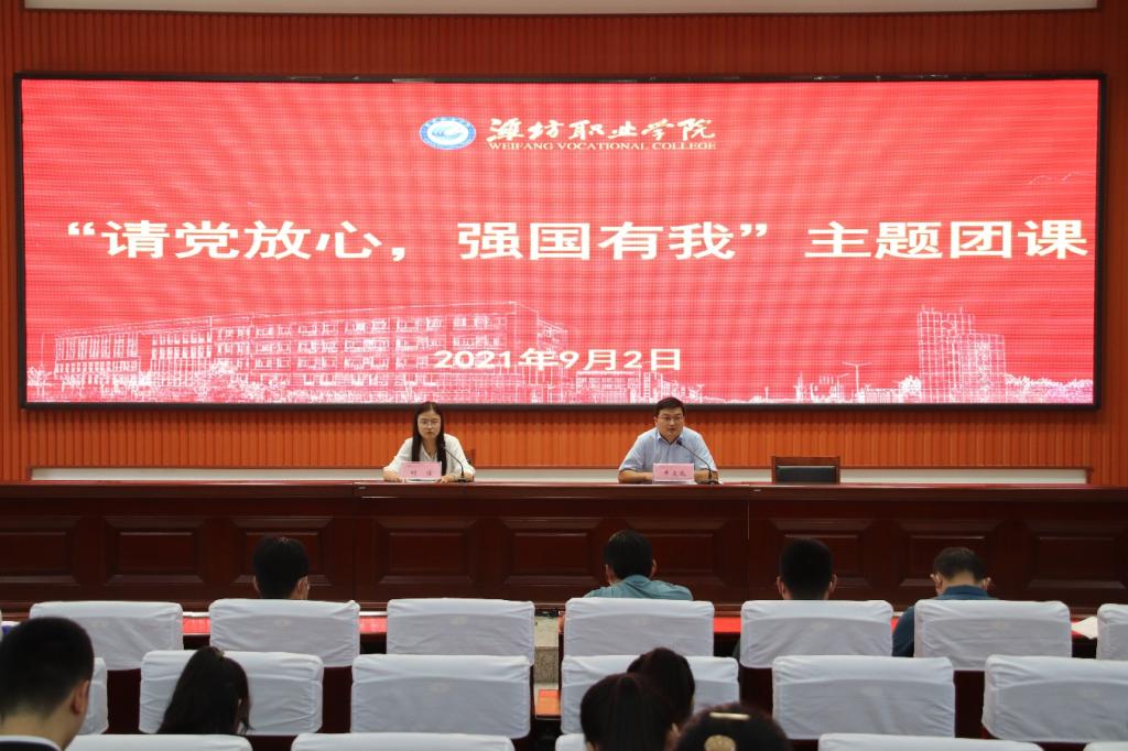 9月2日下午,学院在滨海校区清泽楼报告厅组织开展“请党放心 强国有我”主题团课。学院团委相关负责同志、各二级学院团总支负责同志、学生会全体成员参加会议。