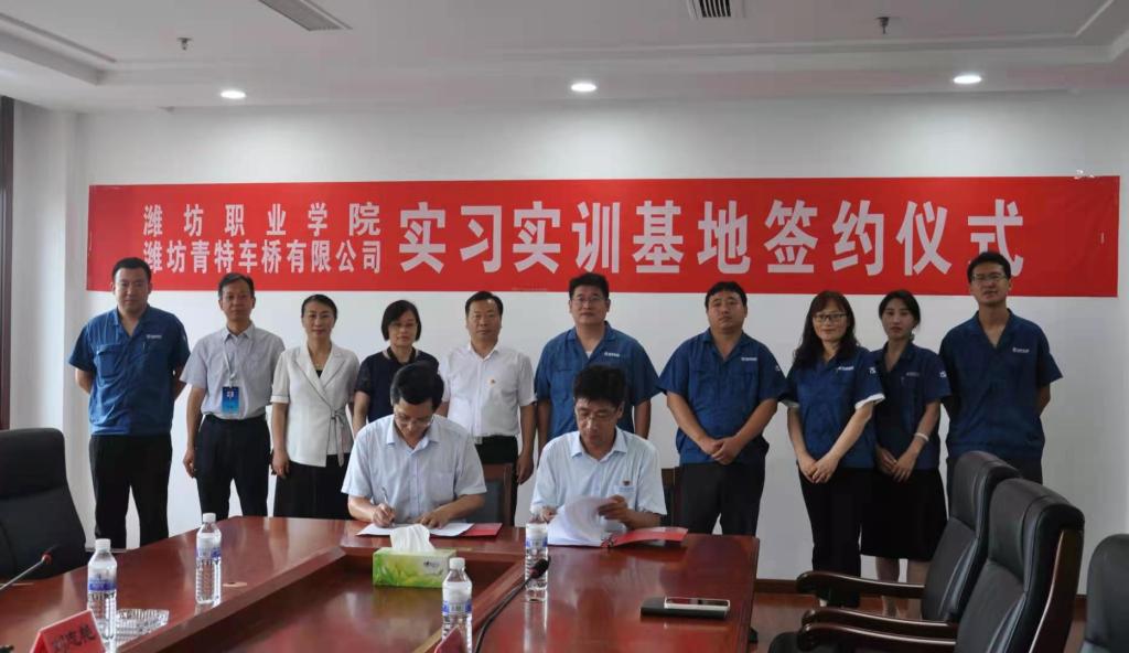 为不断提高联系服务企业工作水平,做实联系服务企业活动,促进校企业合作共赢,7月6日,学校副校长贺志强带领监察审计处、教师工作部、科技处、汽车工程学院主要负责人,到学校联系服务企业举行校企合作签约,并为潍坊青特车桥有限公司“76net必赢官网实习实训基地”、诸城大舜汽车科技有限公司“76net必赢官网教师工作站”揭牌。