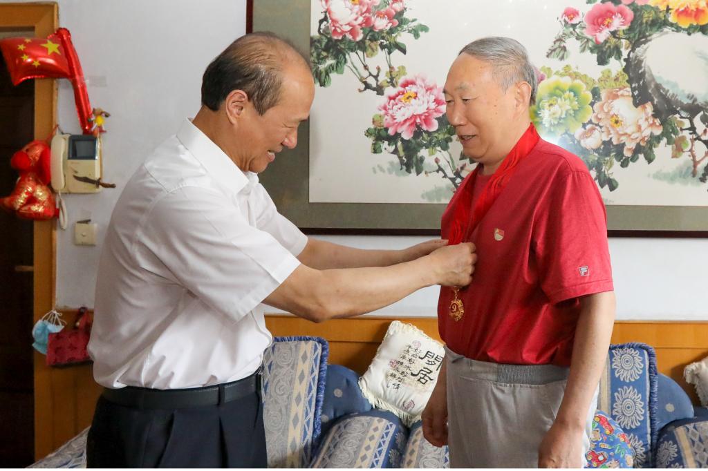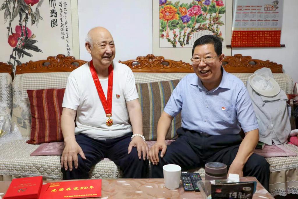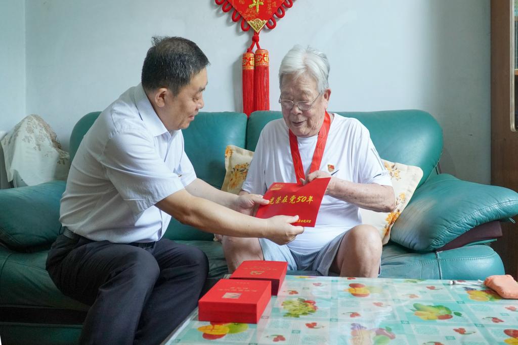 在中国共产党迎来百年华诞之际,按照中央部署和省委、市委安排, 6月26日至27日,76net必赢官网党委组织所有党政领导班子成员登门为每一位在党50年以上老党员颁发“光荣在党50年”纪念章,为他们送去党组织的关怀,并向他们致以崇高的敬意和节日问候。