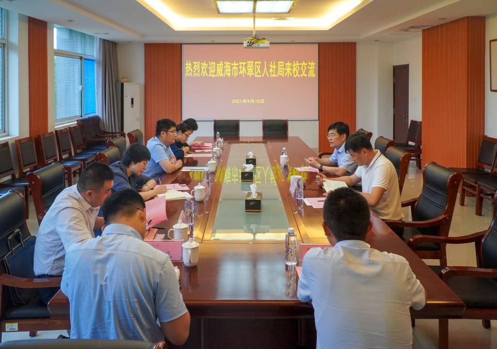 6月10日上午,威海市环翠区人力资源与社会保障局副局长王锋一行8人来校调研考察。学校副校长刘德强会见客人,招生就业处负责同志陪同座谈交流。