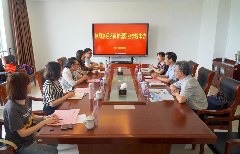 科技处负责同志对邢月英一行的到来表示欢迎,一同观看了学校宣传片,向来访客人介绍了学校办学历史、基本情况、近年来发展建设取得的成绩。国际交流合作处、食品药品学院负责同志与济南护理职业学院对口部门负责同志就校企合作、国际交流、外事活动、合作办学、教学培训和学生管理等方面进行了深入沟通交流。