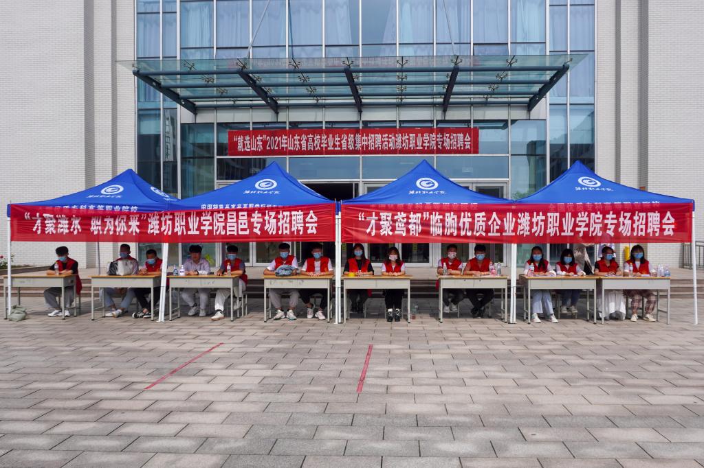 6月3日下午,学校在滨海校区校内广场举办“就选山东”2021年山东省高校毕业生省级集中招聘活动优质企业专场招聘会,昌邑、临朐人社部门有关领导到会视察。