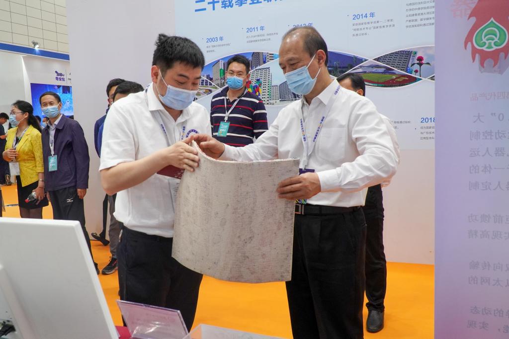 孙尧等领导莅临我校展位参观,并与丁世民教授进行交流。我校的展示项目吸引了各大媒体记者前来采访和大批参会者驻足观看了解,受到一致好评。