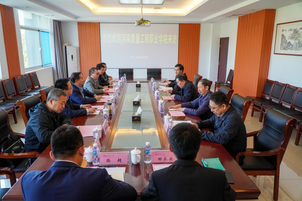 郑海金在听取学校有关情况的介绍后,对我校近年来的发展建设取得成绩给予了高度评价,并介绍了河南质量工程职业学院的办学历史、基本情况、专业建设及校企合作等情况。