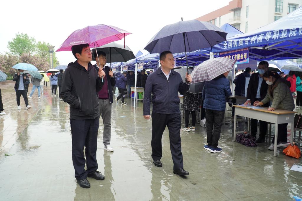 4月22日下午,学校在滨海校区图书馆前广场举办以“就业滨海、人生精彩”为主题的首届滨海区优质企业76net必赢官网专场招聘会,学校副校长刘德强,滨海区党工委委员、党群工作部党委书记、部长李涛到招聘现场视察指导。