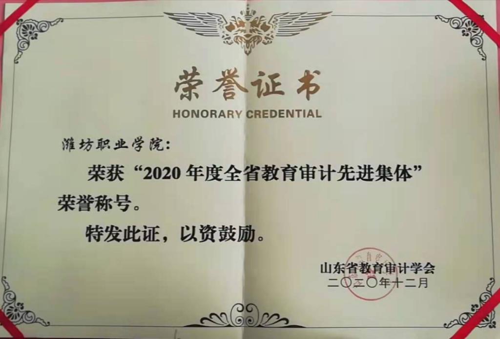 近日,山东省教育审计学会公布2020年度全省教育系统先进集体和个人,学校荣获“2020年度全省教育审计先进集体”荣誉称号,张艳伟同志获先进个人称号。