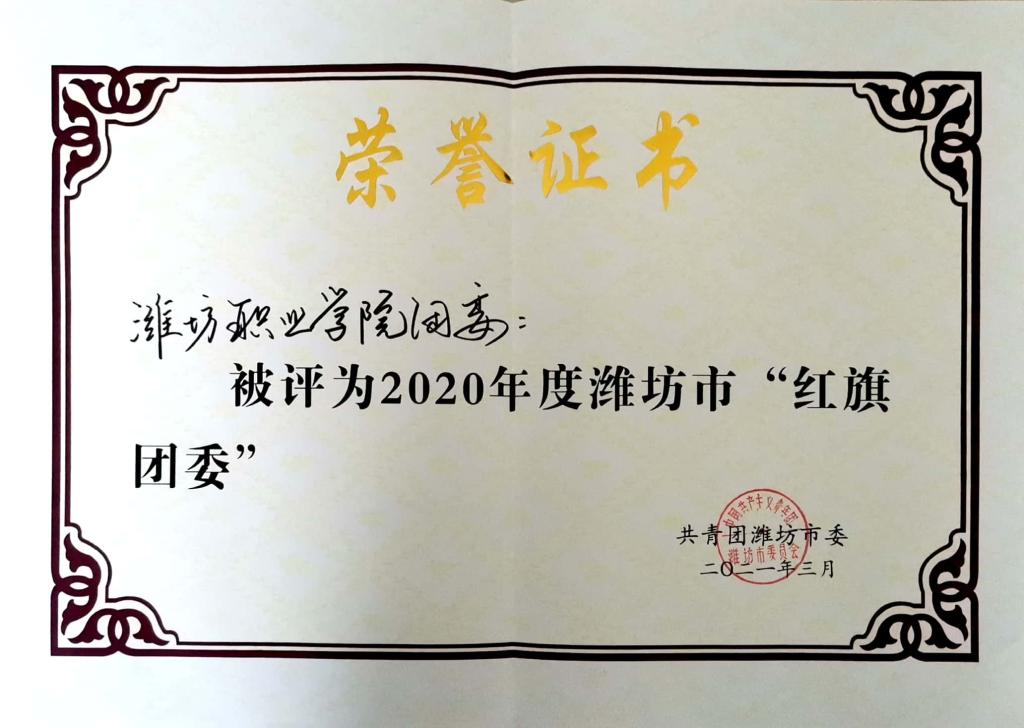 3月5日,共青团潍坊市委召开共青团潍坊市十九届五次全委(扩大)会议,会议表彰了2020年度潍坊市共青团工作先进集体和个人。学校团委荣获“潍坊市红旗团委”荣誉称号,于涛同志获评潍坊市“优秀青年工作者”。