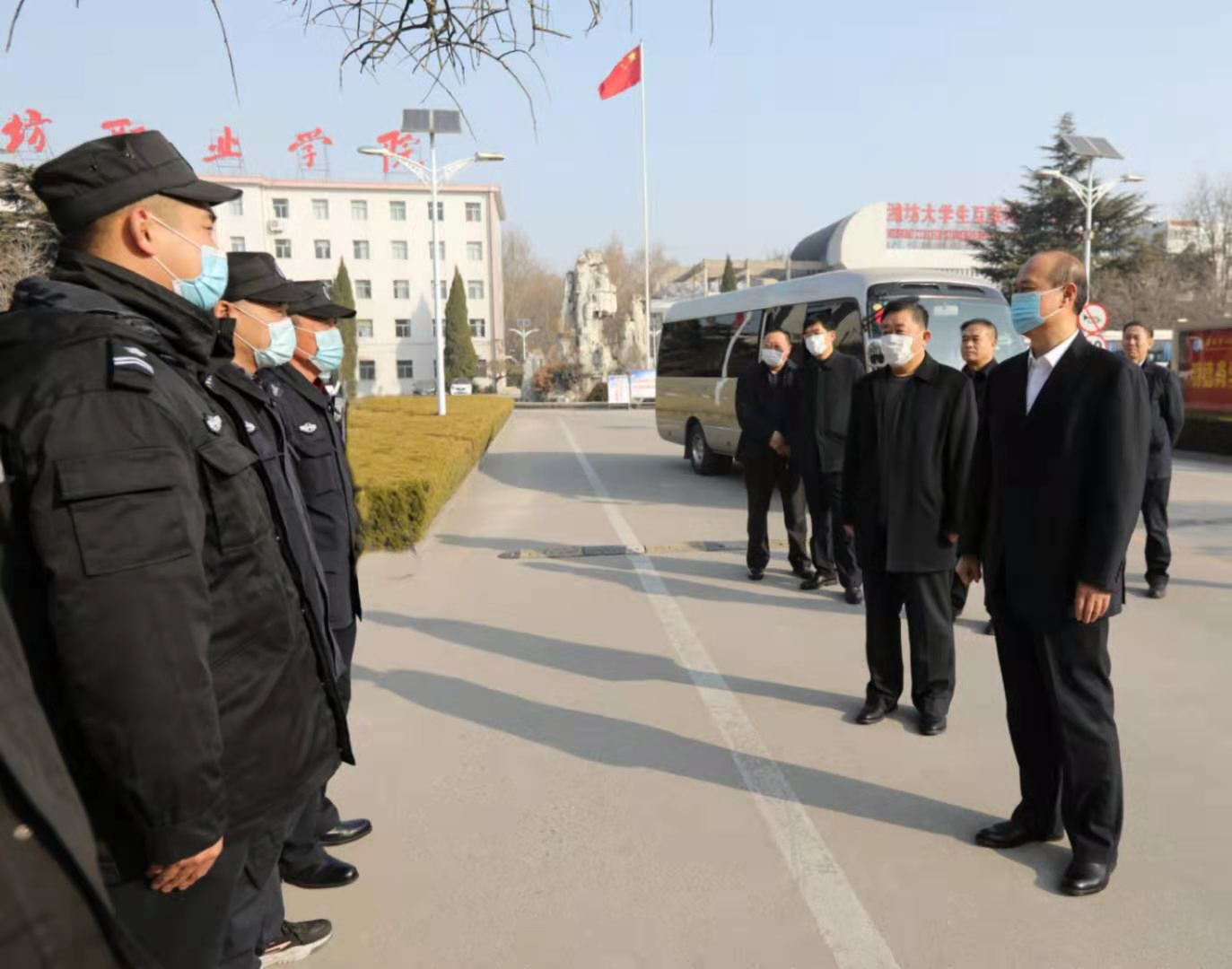 在奎文校区和滨海校区值班室,学院领导与值班安保人员亲切交流,勉励他们发扬奉献精神,坚守岗位,认真履行职责,加强校园安全巡逻,注意设备运行监管,保证春节期间各项工作正常运转,校园平安稳定。