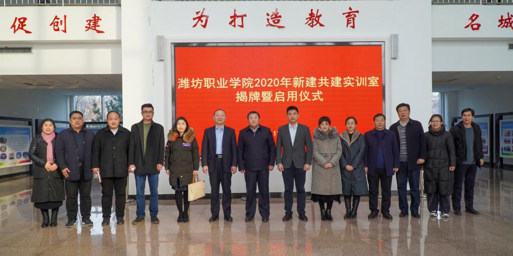12月23日,学院举行2020年新建共建实验实训室揭牌暨启用仪式。中国建设银行股份有限公司潍坊分行副行长程刚、天津远洋泓基电子工程有限公司总经理周童、达内集团院校事业部北方区副总经理杨泽辉、山东齐鲁融媒体乡村振兴研究院有限公司总经理金鸿敏、潍坊农创商业发展有限公司董事郭艳文等企业领导出席。院长王家爱,副院长贺志强、李瑞昌,相关部门、二级学院负责同志参加活动。