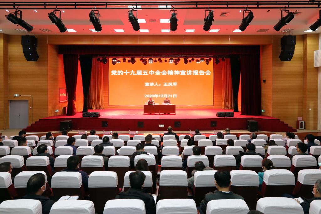 12月21日,学院邀请中共山东省委党校正处级组织员、教授、一级调研员,省委组织部名师送教特聘专家,山东省高校思想政治教育特聘教授,山东省委讲师团理论宣讲专家,山东省省直机关十九大精神宣讲团成员王凤军教授在图书馆报告厅为我们作党的十九届五中全会精神专题报告。学院党委书记马跃启,副书记宋桂言,学院领导赵君堂,副院长贺志强,纪委书记郭晓辉,党委委员、宣传部长刘泓蔚,中层以上领导干部及骨干教师和学生代表200余人参加报告会。宋桂言主持报告会。