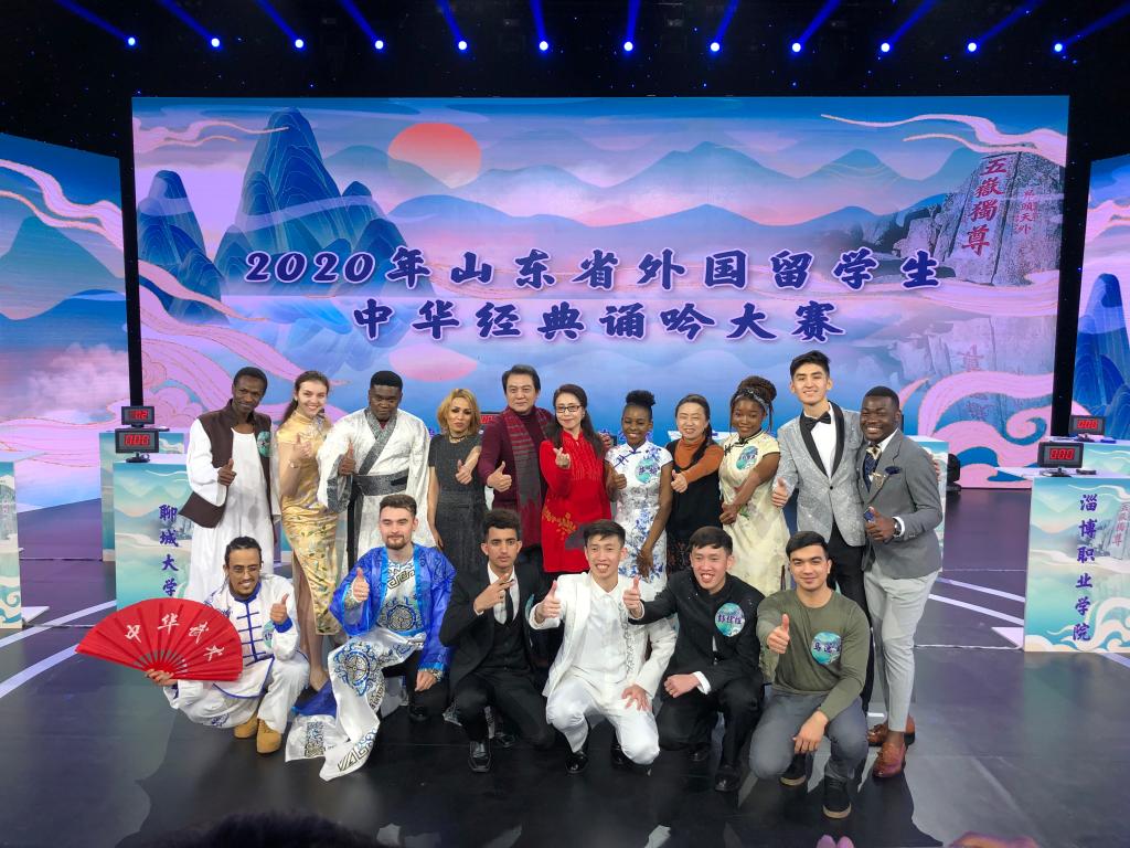 12月18日,由山东省语言文字工作委员会办公室主办,山东教育电视台承办的2020年山东省外国留学生中华经典诵吟大赛在山东教育电视台举行。来自全省本专科高校的14名留学生参加本次比赛,必赢留学生霍吉经过激烈角逐和比拼,最终获得二等奖的好成绩。