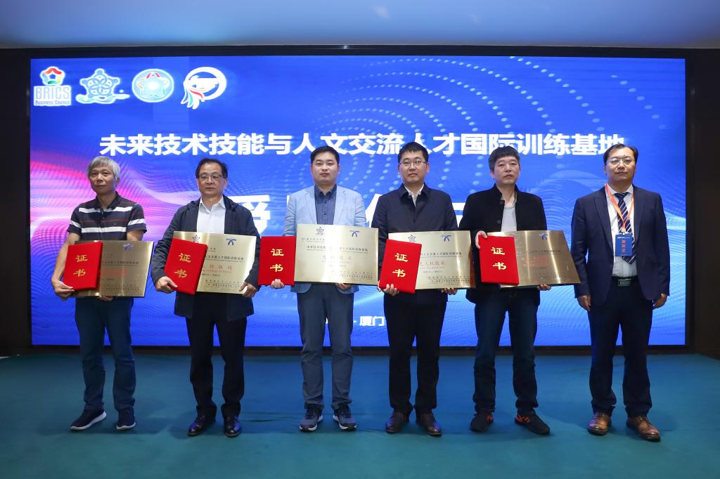 12月9日,未来技术技能与人文交流人才国际训练基地授牌仪式在厦门举行,必赢无人机技术、电梯技术中心被教育部中外人文交流中心和一带一路暨金砖国家技能发展国际联盟联合授予未来技术技能与人文交流人才国际训练基地牌匾。