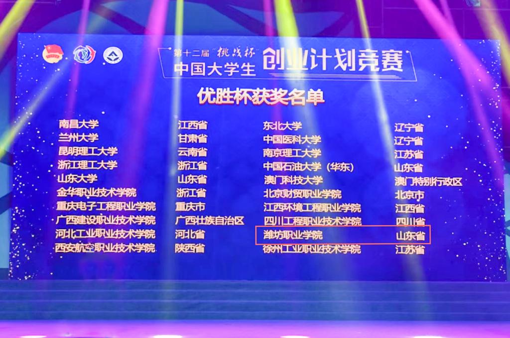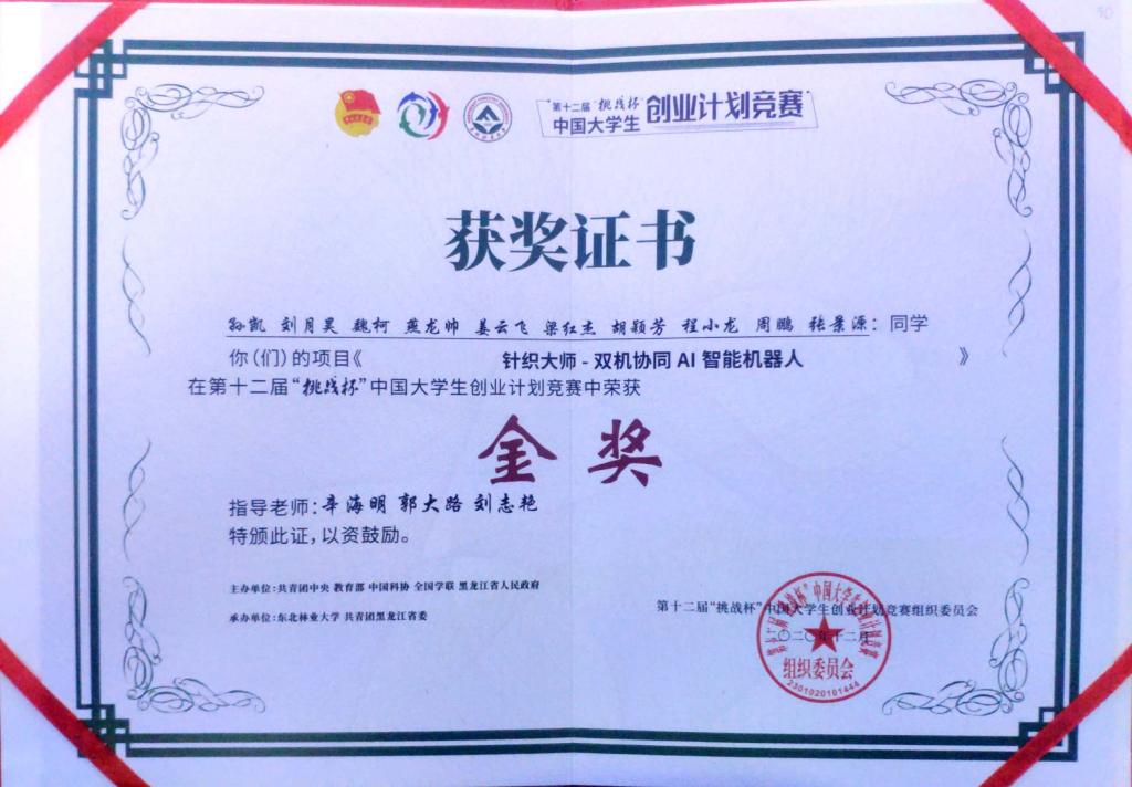 12月9日,第十二届“挑战杯”中国大学生创业计划竞赛全国决赛在东北林业大学落下帷幕,必赢孙凯等同学的“针织大师-双机协同AI智能机器人”项目荣获金奖,孟娇等同学的“大自然的化妆师”项目荣获银奖。学院同时获得“挑战杯”全国优胜杯,全国仅10所高职院校获此殊荣,是二十多年来山东省唯一获得“挑战杯”中国大学生创业计划竞赛金奖的高职学校。辛海明、郭大路等老师荣获全国优秀指导老师奖。